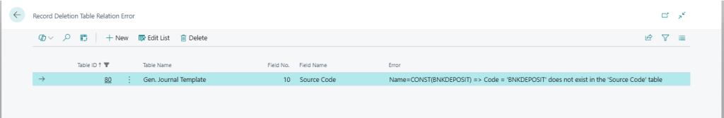 The next option when reviewing the remaining data is to use the Check Table Relations function. This function runs through all records and uses the field relations defined in the Field table in Business Central and validates the table relations by just looking if the related record is in the database or not. Note that this only checks the very basic relations where a field has a table relation to a field in another table (similar to the table relations you find in the FactBox in the configuration worksheet). It does not check table relations that involves multiple fields or conditional table relations. But it is still a good check.